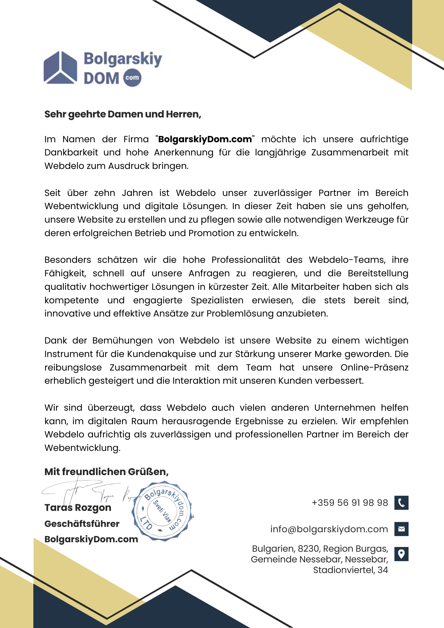Мы рады, что можем сотрудничать с вами и с уверенностью рекомендуем ваш офис как профессиональное, надёжное и ответственное место для делового сотрудничества.