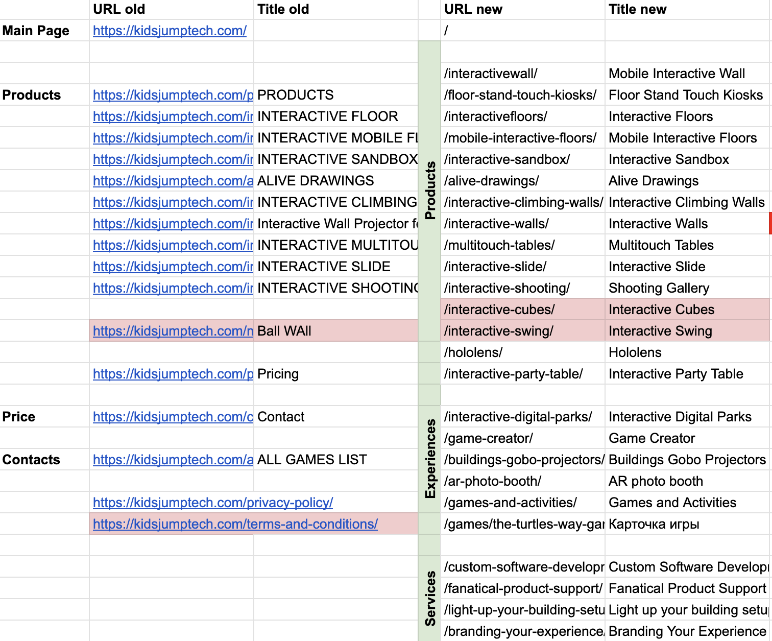 2. Content und interne Optimierung. Wir erstellten einen vollständigen semantischen Kern mithilfe des Google Keyword Planners und der Wettbewerbsanalyse. Auf Basis dieser Suchanfragen schrieben wir einzigartige Title- und Description-Tags für alle Seiten. Wir überarbeiteten die Texte für Schlüsselbereiche („Interactive Floors“, „Interactive Parks"), gestalteten die Produktkarten neu und erstellten die Bereiche „Bewertungen“ und „Fallstudien“ von Grund auf neu.